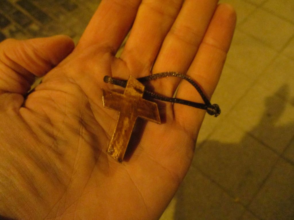 Whether walking a pilgrimage or living through the everyday, carrying symbolic trinkets & baubles can prove to be powerfully Meaning-full – for one, allowing the traveler to always have a gift on hand that is ready to be given to another who might be in need of such a kindness, and for another, to allow us the opportunity to let these same symbols go. In this particular moment, it was time to let this wooden cross* return to the One from whence it had come – and a smoothly flowing river below the bridge over which I was walking seemed as good a place as any to let it depart to find its next recipient …