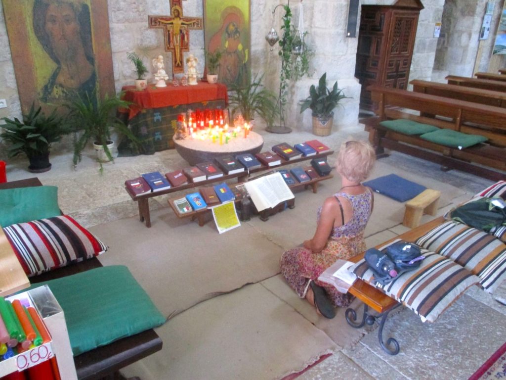 It was rare indeed to find sincerely loving Spirit within the walls of any church. Indeed, far more often than not, those same religious enclaves were home to restrictive dogmas and condemnatory accusations and bigot-written verses and conditional (ie non-loving) love. And yet here in Hontanas the opposite was blessedly true – with a significant portion of the main church’s entrance-nave being blatantly established as a truly nonjudgmental Place of Peace. Tea & cookies were set out for any & all to enjoy, Bibles in 20 languages were offered for any & all to read, and cushions of all colors & sizes were proffered upon which any & all might rest. No monies were asked for in return for these gifts and no proclamations of religious allegiance were in any way demanded. It was simply what a church of any faith or creed should be – namely, a humble place of rest & refuge for any & all of humanity to enjoy.