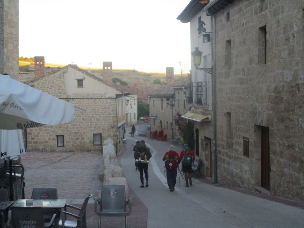 Emma, purportedly enamored by my Message of selfless love, had invited me to not only stay overnight in her hostel but to remain for another full day in town as well – while she attempted to arrange a few places for me to offer my presentation on Re-Discovering Peace to the surrounding community. Now I knew that pilgrims aren’t really the best-suited audience for that message (pilgrims being, by nature, often far too self-fixated upon their own “salvation” or “awakening” or “enlightenment” or “cleansing” to be able to truly Hear the greater summons to a life of joyful self-sacrifice) and as such I didn’t harbor any hopes or expectations related to these planned presentations. And yet it was an honor to be asked by Emma to share the same nonetheless. In addition, accepting that request had kept me in town for an extra day; an occurrence which ended up allowing a large handful of the pilgrim friends from my more recent Pilgrim Families to catch up with me and see each other again – with Mate proving to be one of the same. He had arrived in town the previous late-afternoon, had sought me out in town, had found me quite easily, had chatted with me for awhile, and then had made plans to meet me for a coffee on this next-day early morning before he headed back out onto The Road. And so it was that I rose after 9+ hours of deep & refreshing sleep, and so it was that we did indeed meet for that early morning coffee, and so it was that I was able once again to wish him a heartfelt fare-well as he walked off into that day …